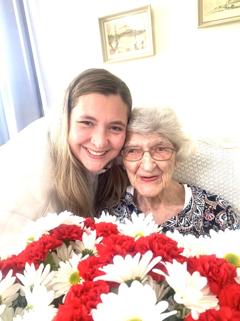Granddaughter Danielle flew into town (front page photos) and ordered the special bouquet from the Flowers in Bloom shop on Ellice Ave.