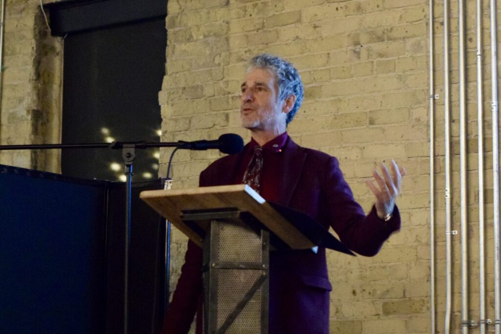 Todd Litman speaks about multimodal transportation at Changing Lanes, an event hosted by Green Action Centre at The Forks on February 25, 2026.